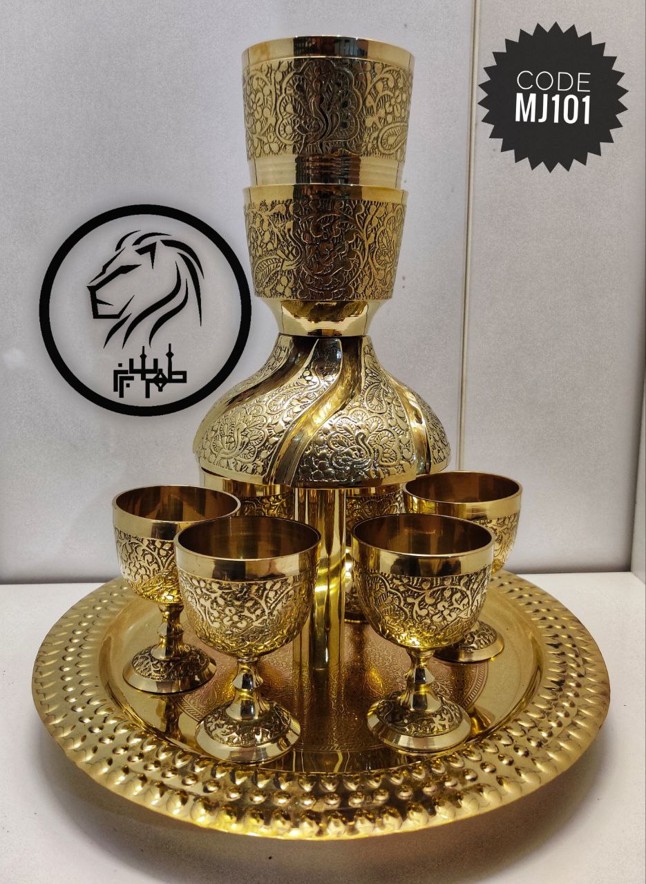 ست پارچ و لیوان برنجی با طرح گل برجسته (لیوان ها موجود نیست)
