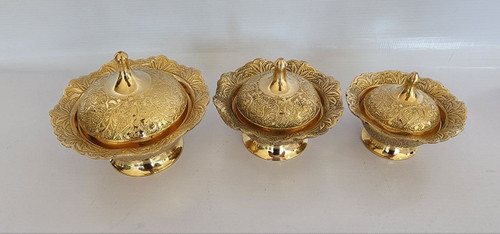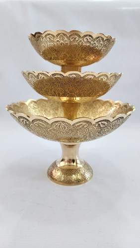 سرویس پذیرایی 3تایی طرح طاووس 6 / 8 / 10 اینچ برنجی