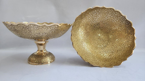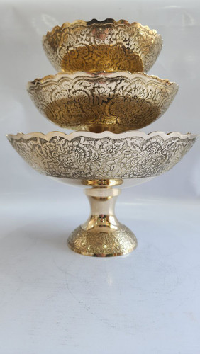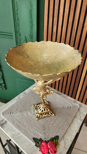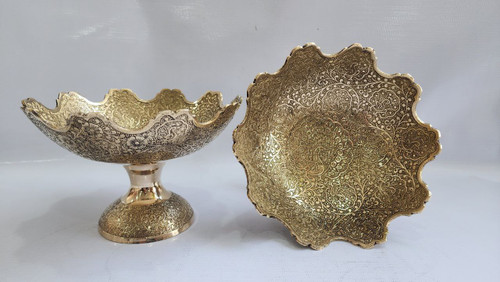 کشکول (میوه خوری) لوکس قلم زنی برنجی بزرگ پایه گرد