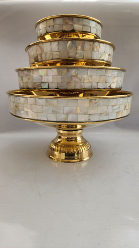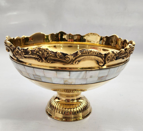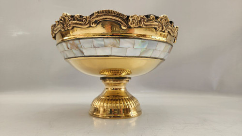 کاسه میوه برنجی پایه دار صدفکاری شده