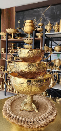 سرویس پذیرایی 3 تایی لب قلعه طرح طاووس 10/8/6 اینچ برنجی