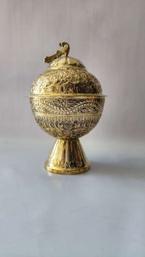 شکلات خوری درب دار طاووس کاملا قلم زنی شده برنجی کاردست
