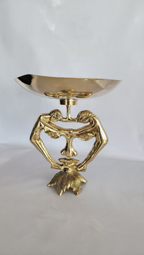 ظرف طرح طاووس پایه دو انسان در یک صورت برنجی
