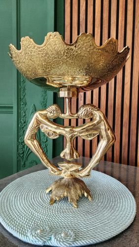 میوه خوری برنجی طرح طاووس لب قلعه پایه فرشته سنگین
