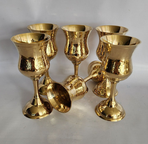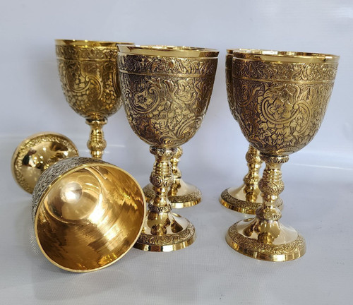 ست شش عددی جام یا لیوان سلطنتی سنگین طرح گل برنجی