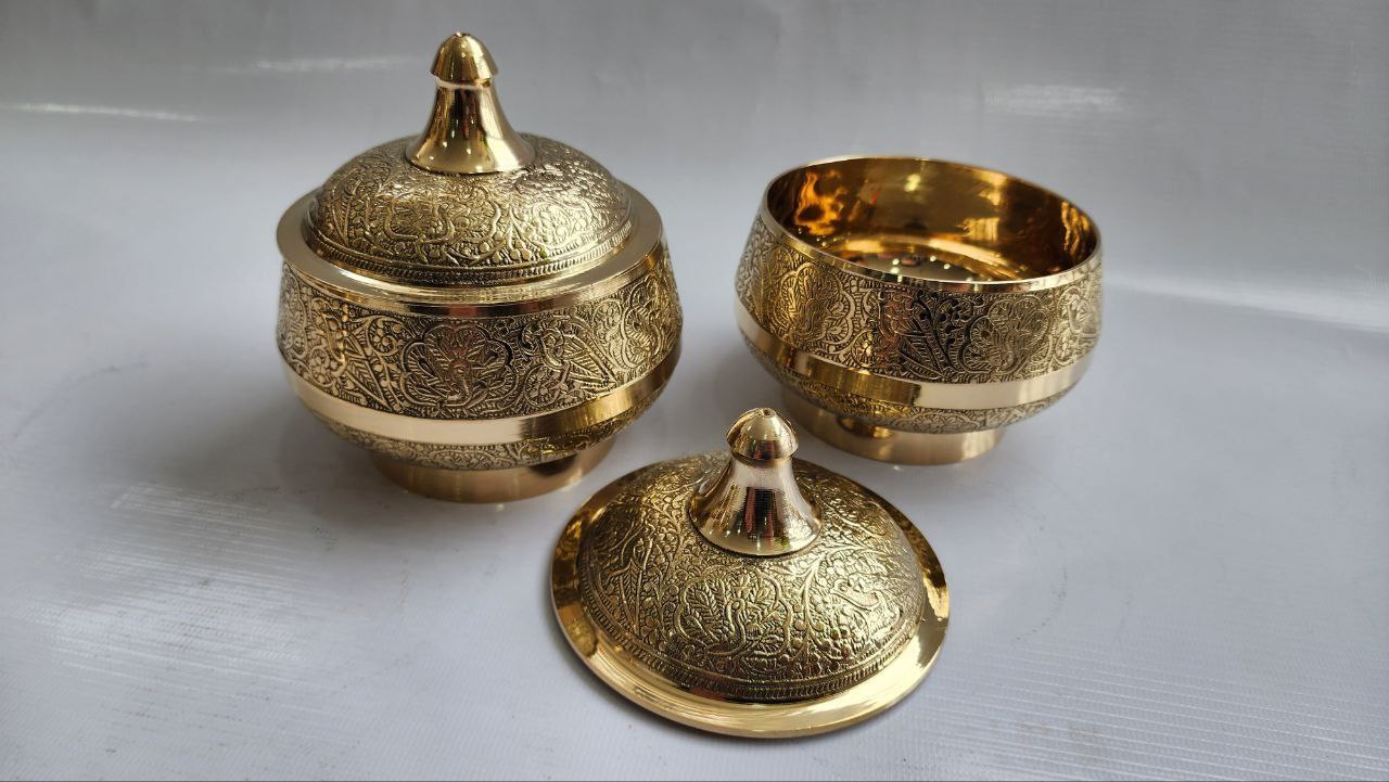 کشول (آجیل خوری) قلم زنی برنجی متوسط پایه گرد
