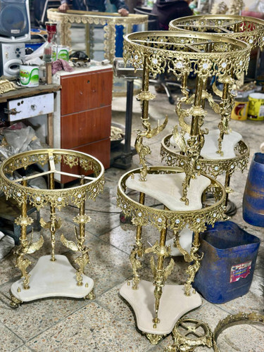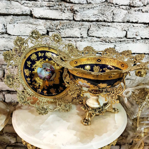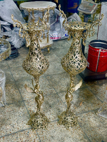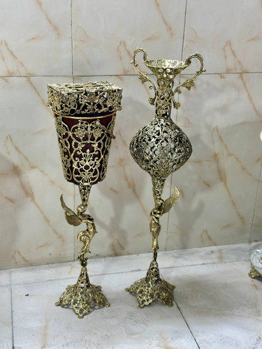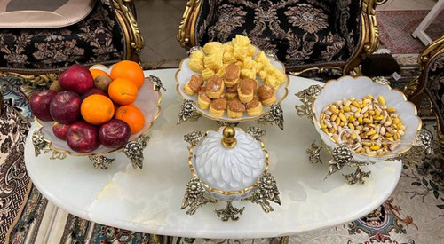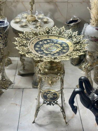 سرویس پذیرایی برنجی پایه سنگی مناسب برای هفت سین در دو رنگ