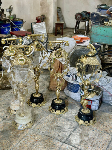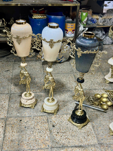 ساعت و شمعدان کوزه ای برنجی در سه رنگ