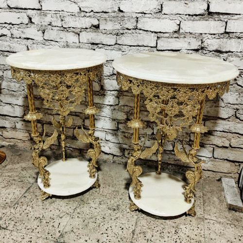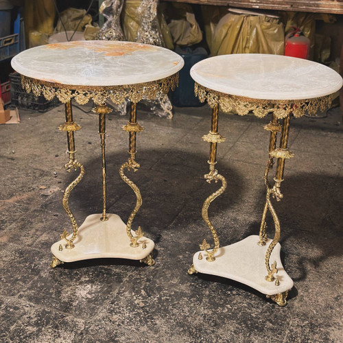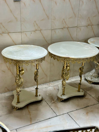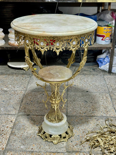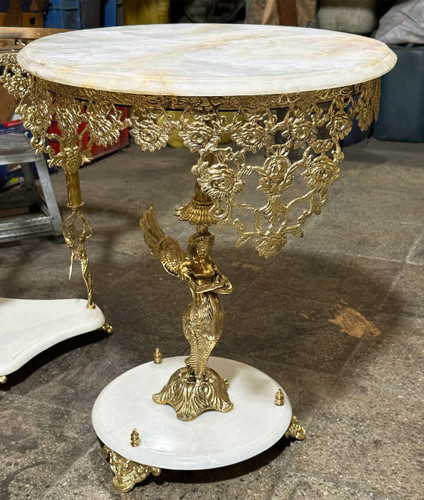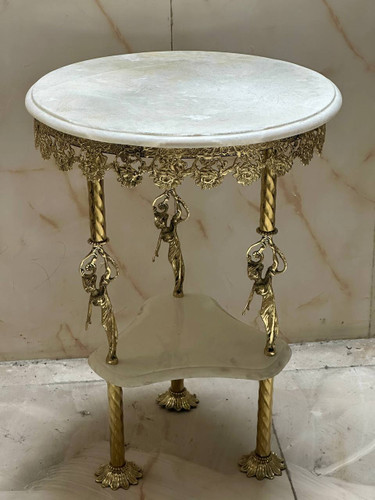 میز فرشته گل رز تاج دار برنجی با سنگ مرمر درجه 1