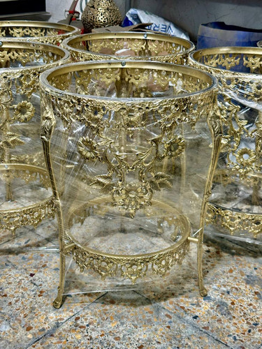 ست سطل دستمال و گلدان ستون پرنس تمام برنج
