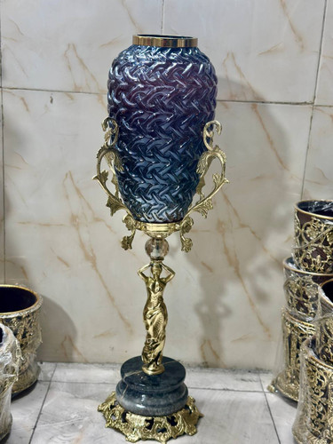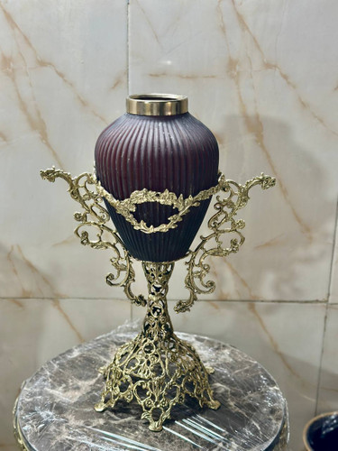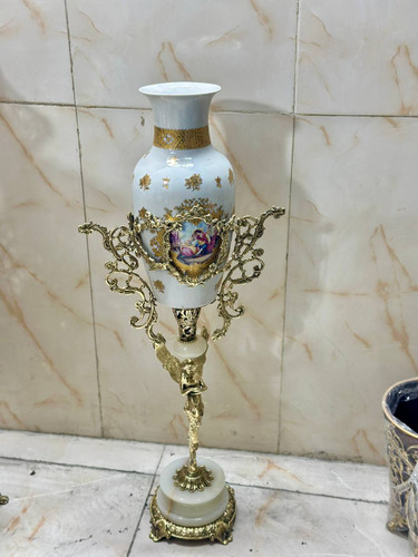 گلدان کنار سالنی چینی طلاکوب پایه سنگی