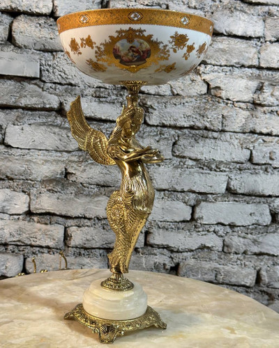 میز پایه سنگی سه فرشته و سوراهی تاج دار