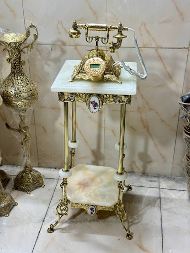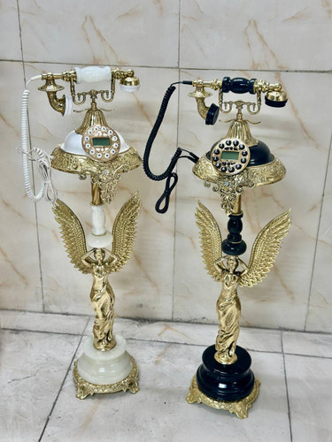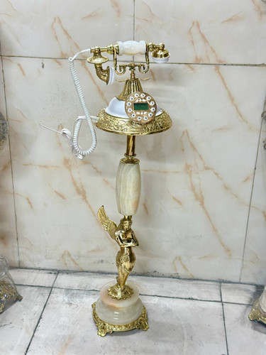 تلفن هرمی دسته سنگی مشکی وسفید برنجی
