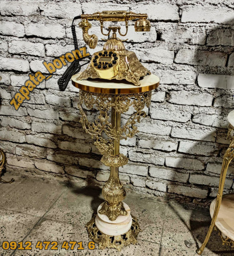 تلفن ایستاده مدل رز تاج دار پایه گرد تمام برنج