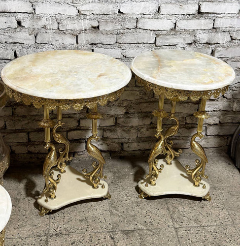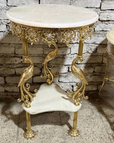 میز درنا دوطبقه نگین دارگل آفتاب برنجی