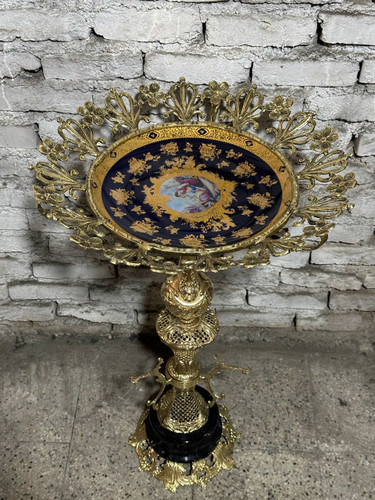 ظرف میوه خوری و یا آجیل خوری برنجی پایه سنگی ستون شاه ملائکه در دو رنگ