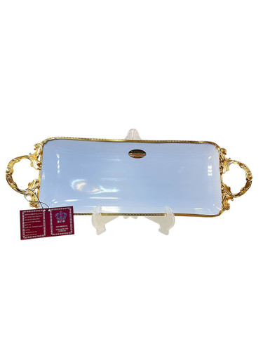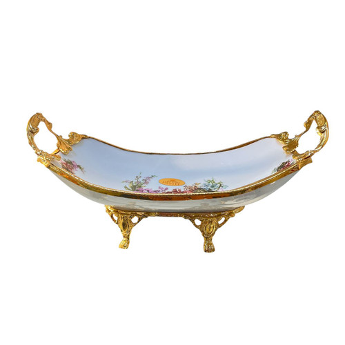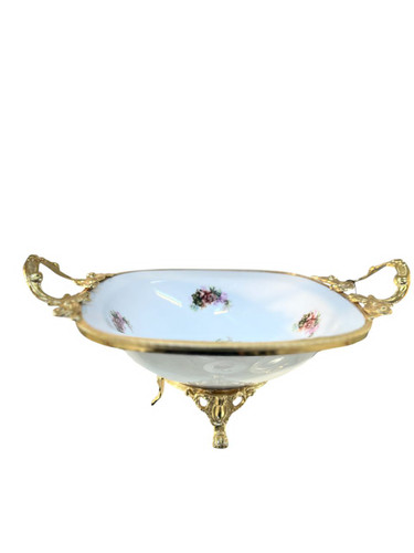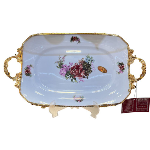 دیس مستطیل پایه دار دسته دار طرح گل سرامیکی