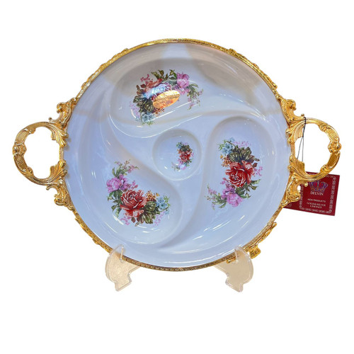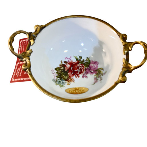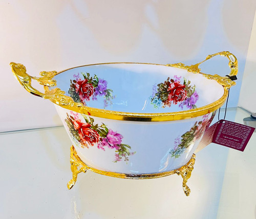 دیس برنج امپریال دسته دار سرامیکی طرح گل پایه دار
