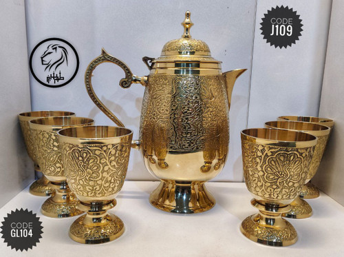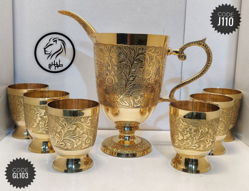 ست پارچ و لیوان برنجی با طرح گل برجسته (لیوان ها موجود نیست)