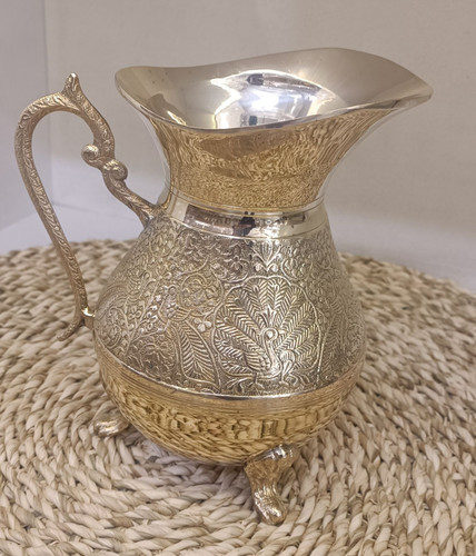 پارچ برنجی مدل چهار پایه طرح طاووس سایز9 اینچ