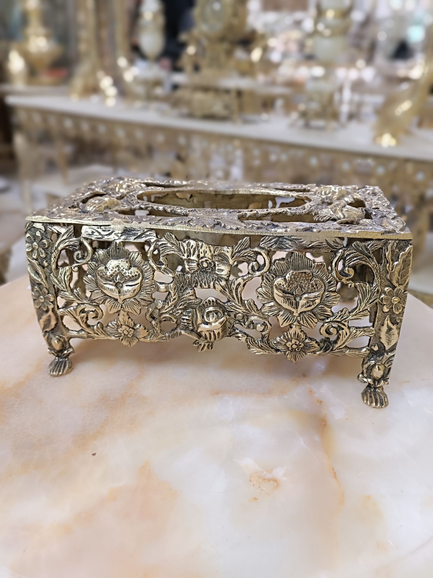 جادستمال رومیزی برنجی مدل گل رز همراه با ساعت