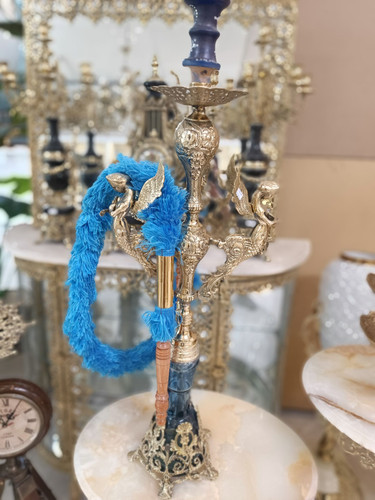 ناموجودقلیان طرح فرشته برنجی شیشه طلایی همراه سری و شلنگی(قابل استفاده)