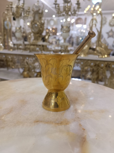 هاون قلم زني طلایی برنجی