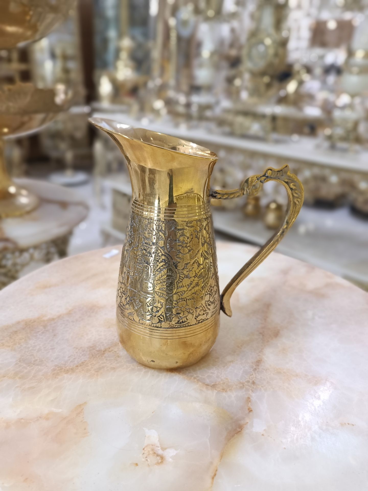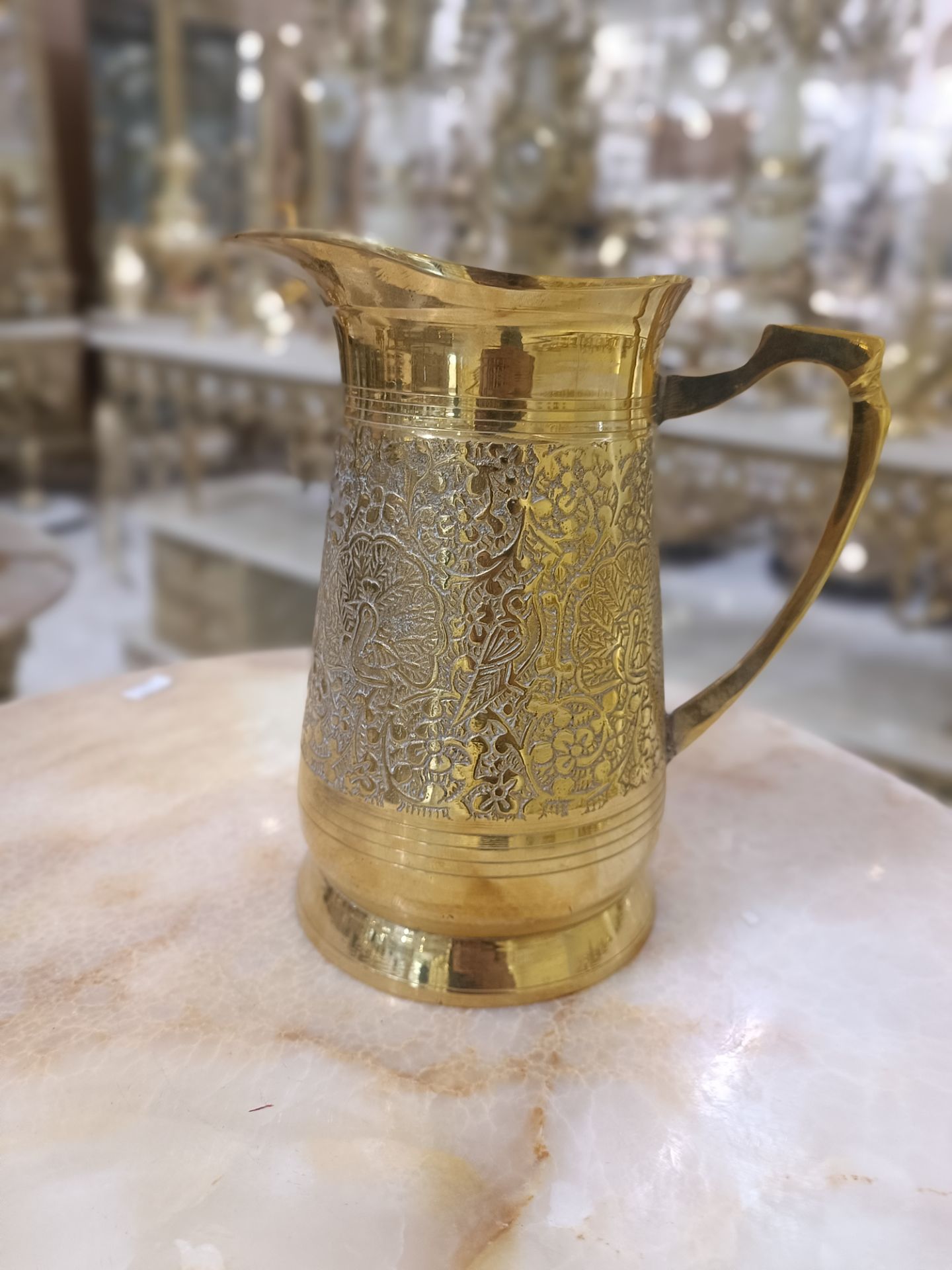 پارچ طرح طاووس 9 اینچ برنجی