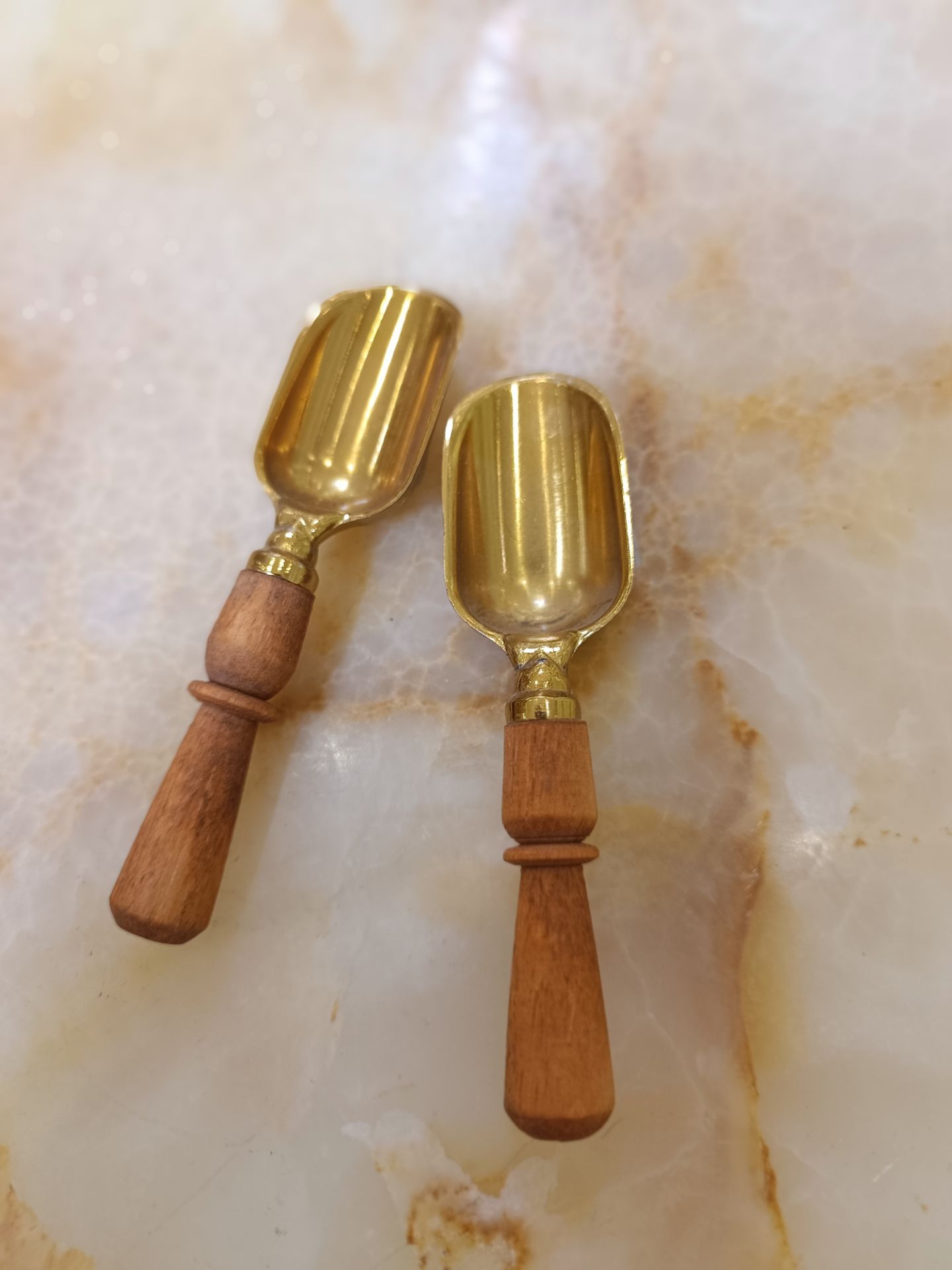 قاشق ادويه دسته چوبي سايز کوچک طلايي بصورت تکی