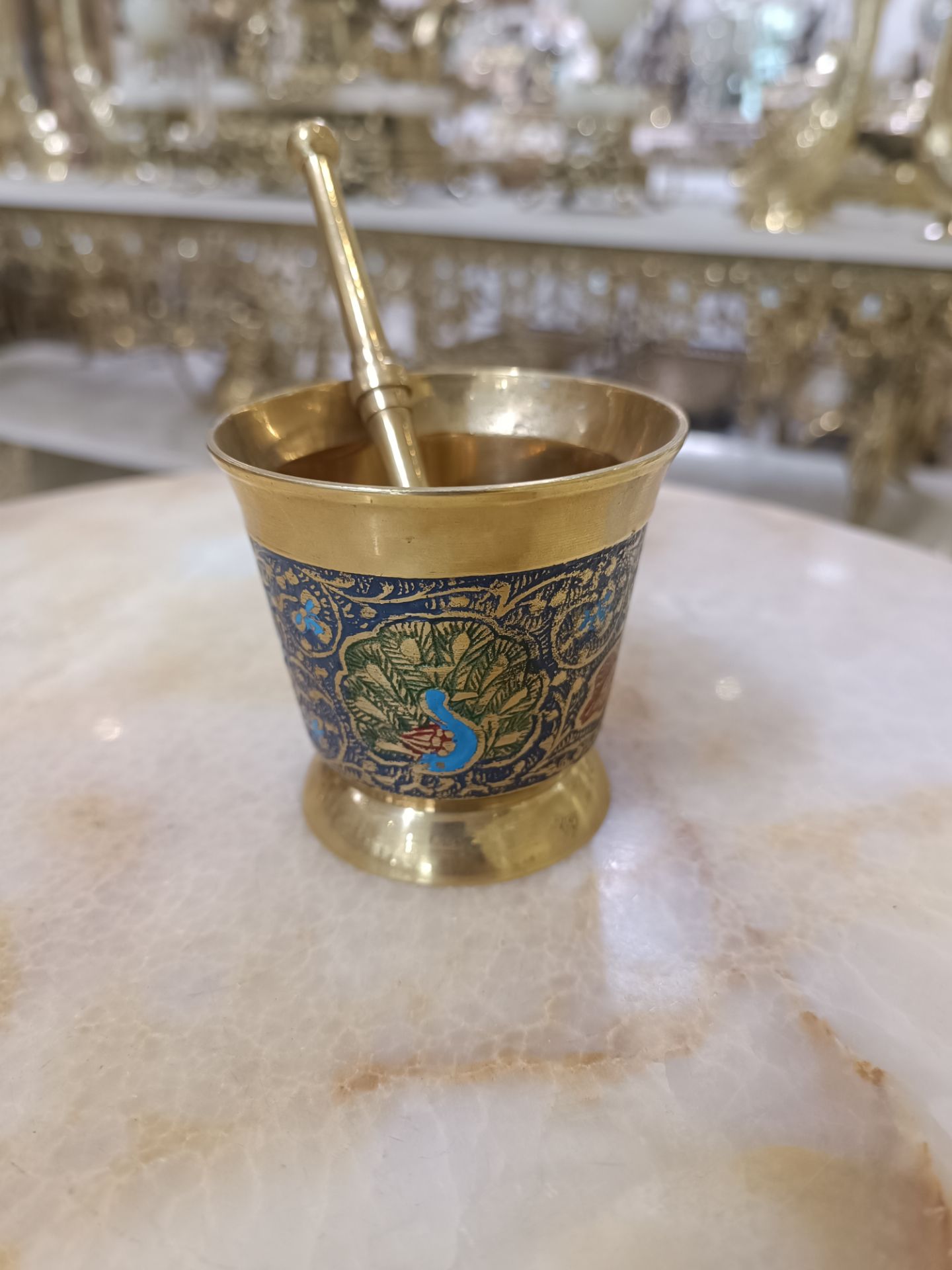 هاون ميني طرح طاووس برنجی