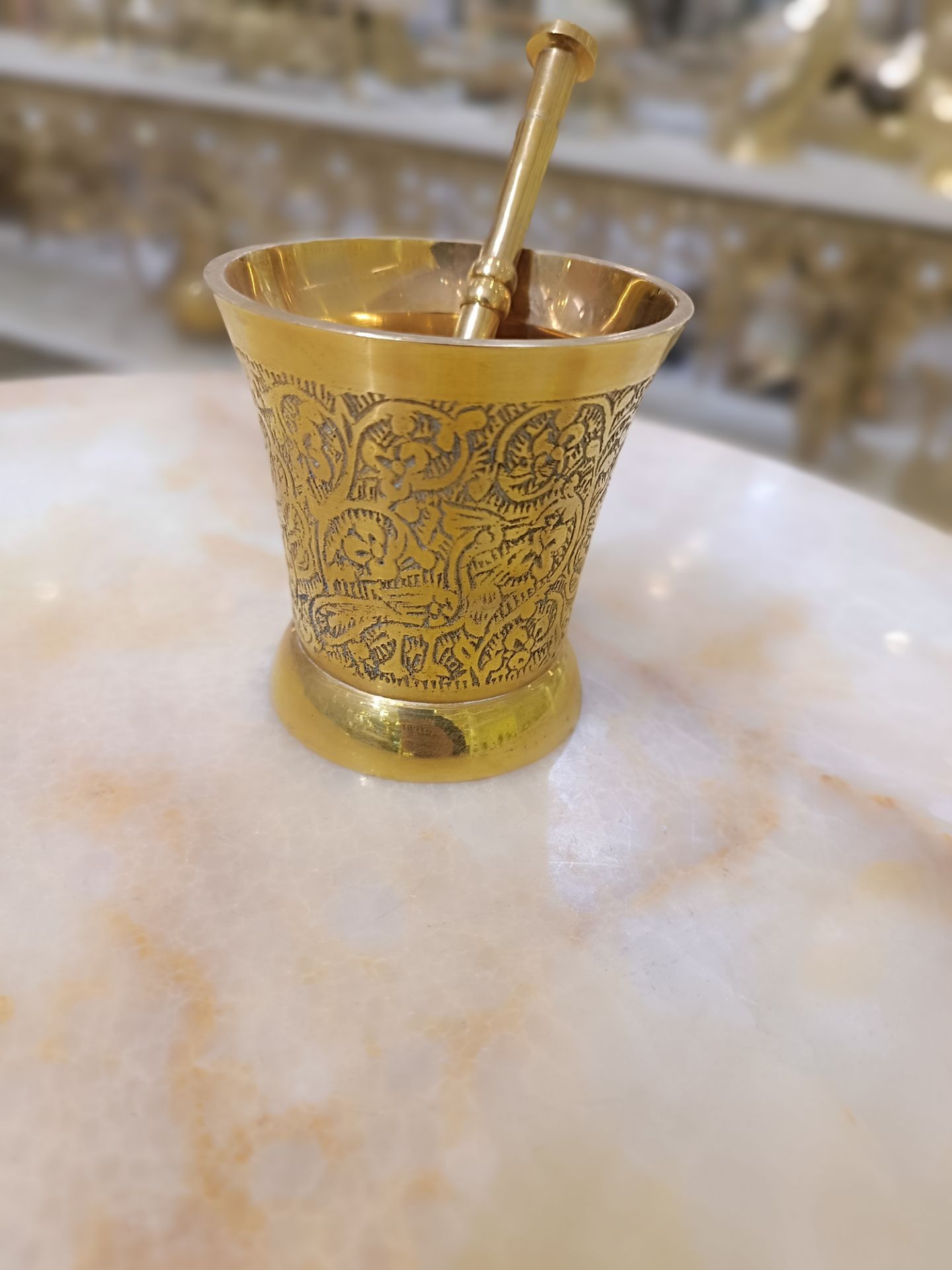 هاون قلم زني طلایی برنجی