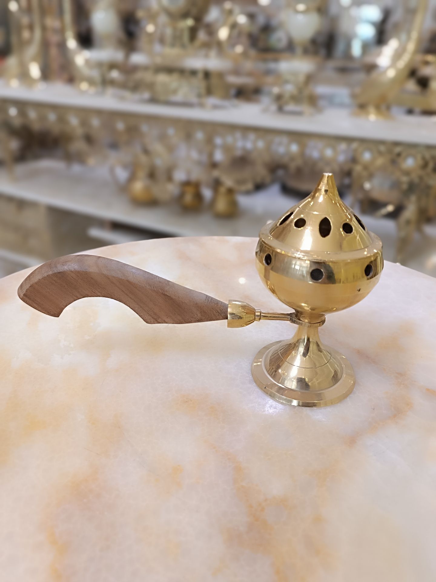 اسپند دودکن دسته چوبي 7 اينچ برنجی