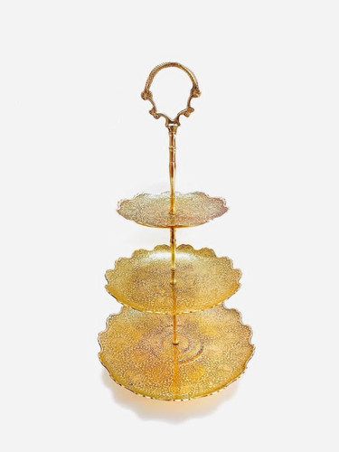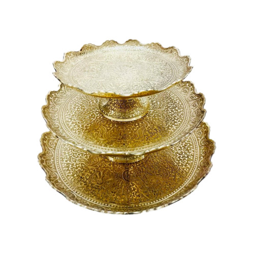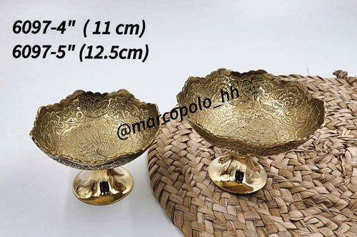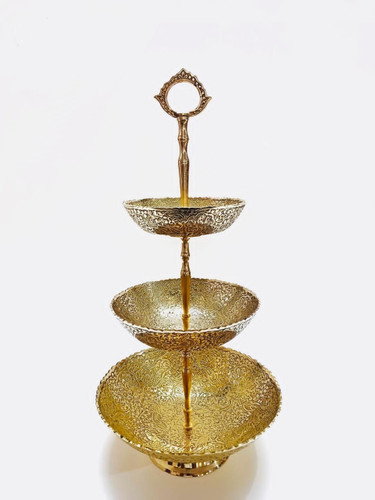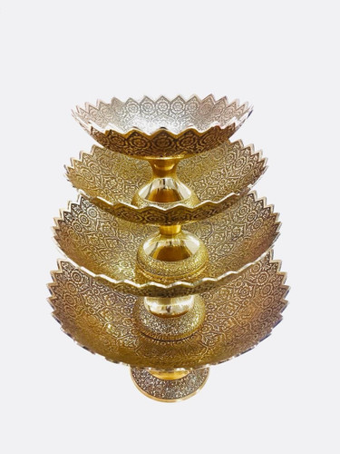 شیرینی خوری نیم پایه مثلثی طرح گل در دوسایز مختلف برنجی هندی