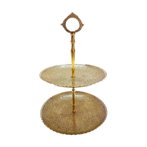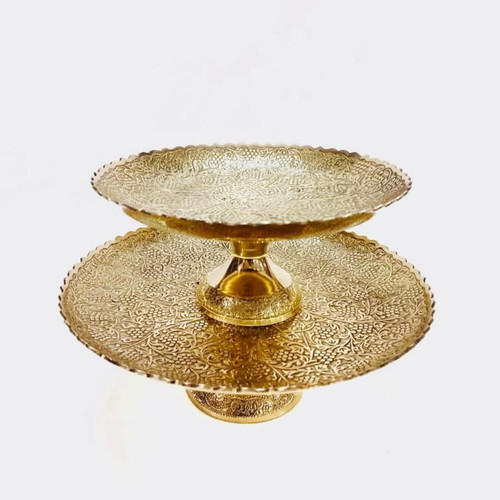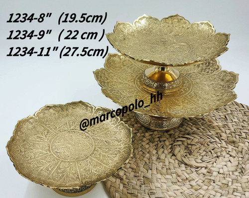 شیرینی خوری گرد پایه بلند برنجی هندی در دو سایز مختلف قابل استفاده