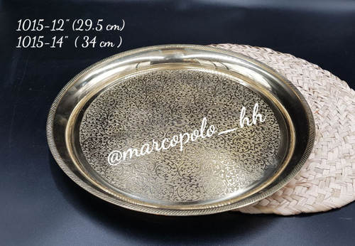 سینی گرد طرح طاووس برنجی هندی در دو سایز مختلف