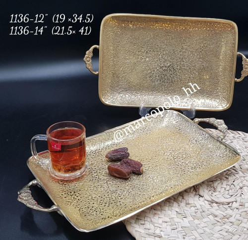 سینی مستطیل طرح گل برنجی کاربردی و قابل استفاده