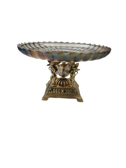 شیرینی خوری لب قلعه طرح طاووس پایه دار برنجی