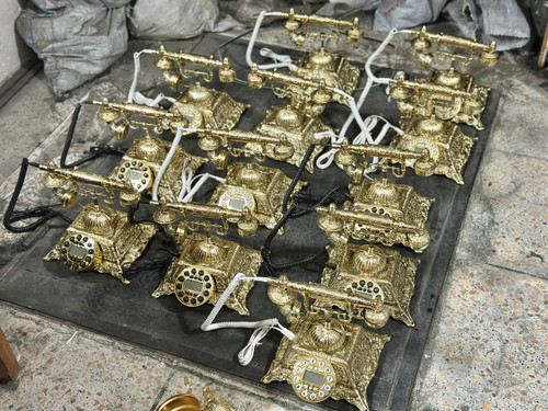 تلفن برنجی گرد دسته سنگی رنگ مشکی برنجی ایرانی