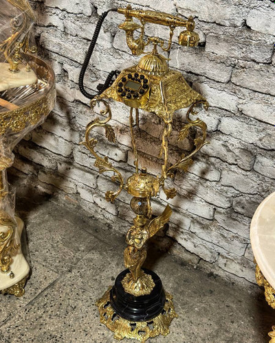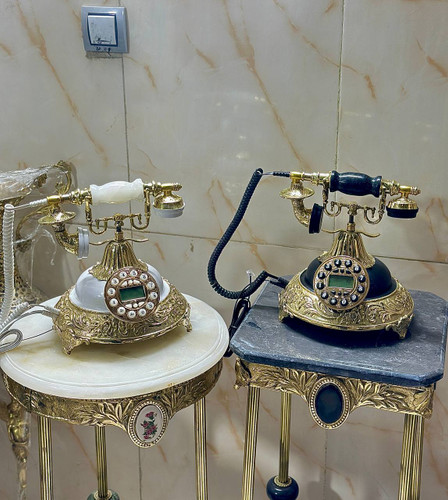 تلفن رومیزی برنجی ترکیبی با سنگ مرمر در سه رنگ سبز مشکی و سفید