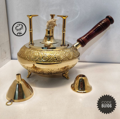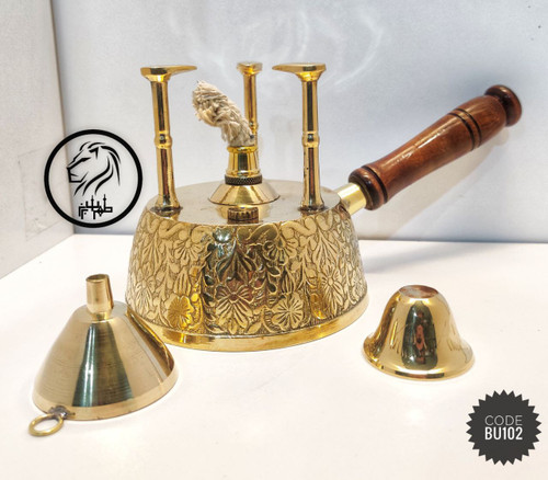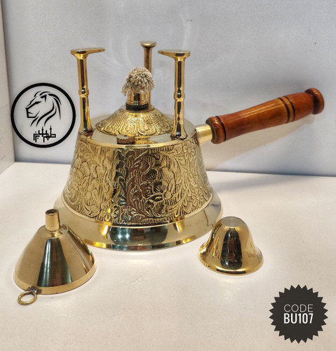 قهوه جوش درب دار طرح شاخه و برگ برنجی هندی