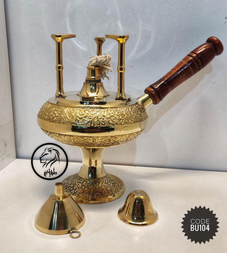 قهوه جوش برنجی درب دار گرد راه راه طلایی هندی