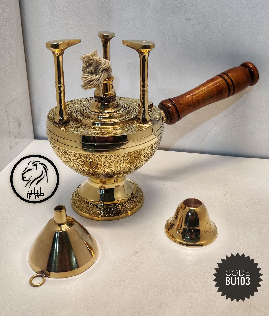 قهوه جوش برنجی درب دار گرد راه راه طلایی هندی