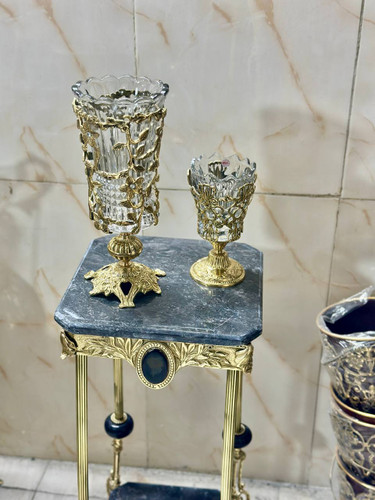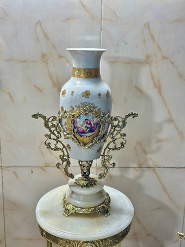 گلدان رومیزی چینی طلا کوب پایه سنگی