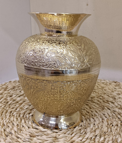 گلدان برنجی لب هلالی حکاکی شده | دکوراسیون لوکس و مقاوم
