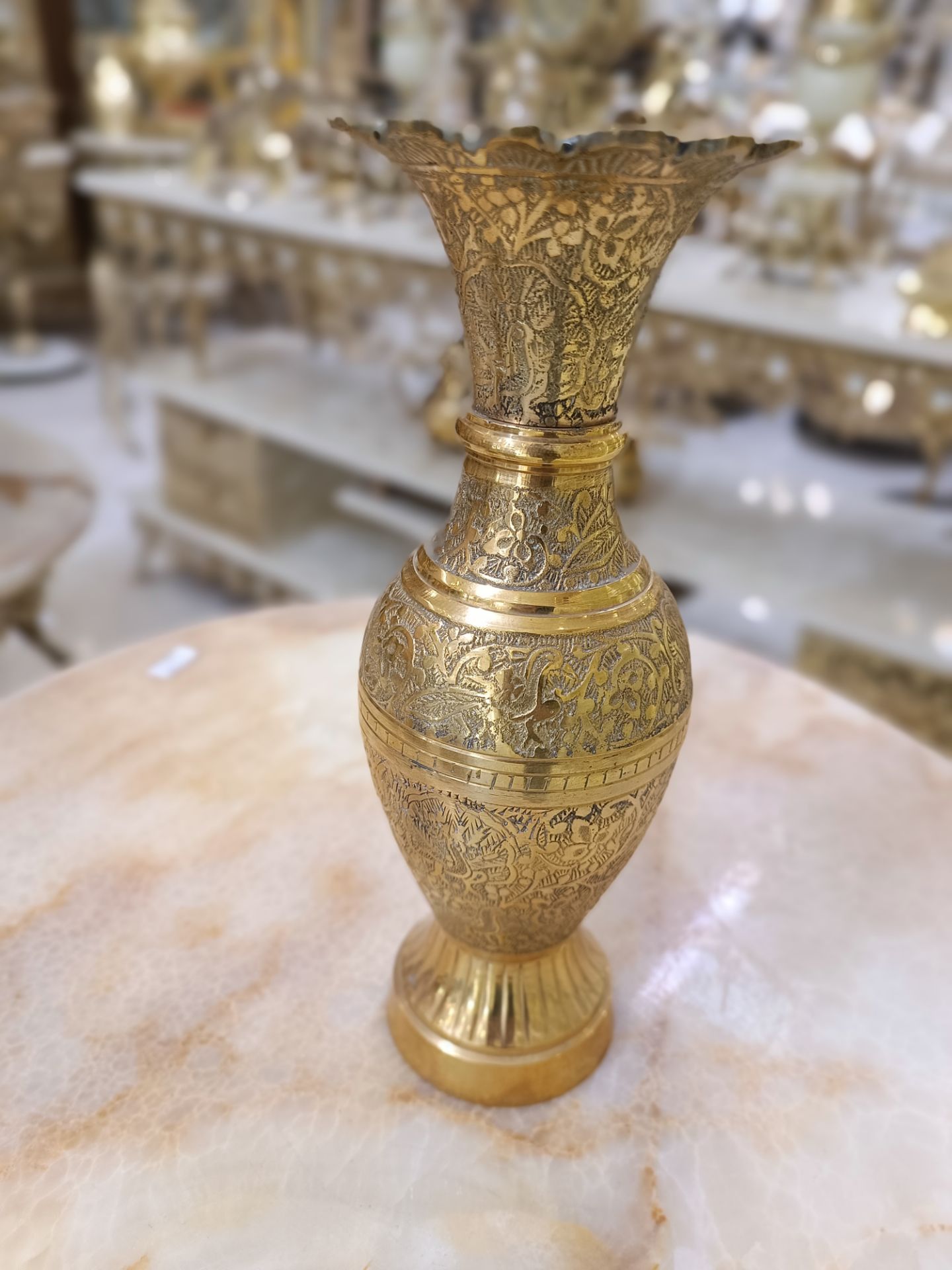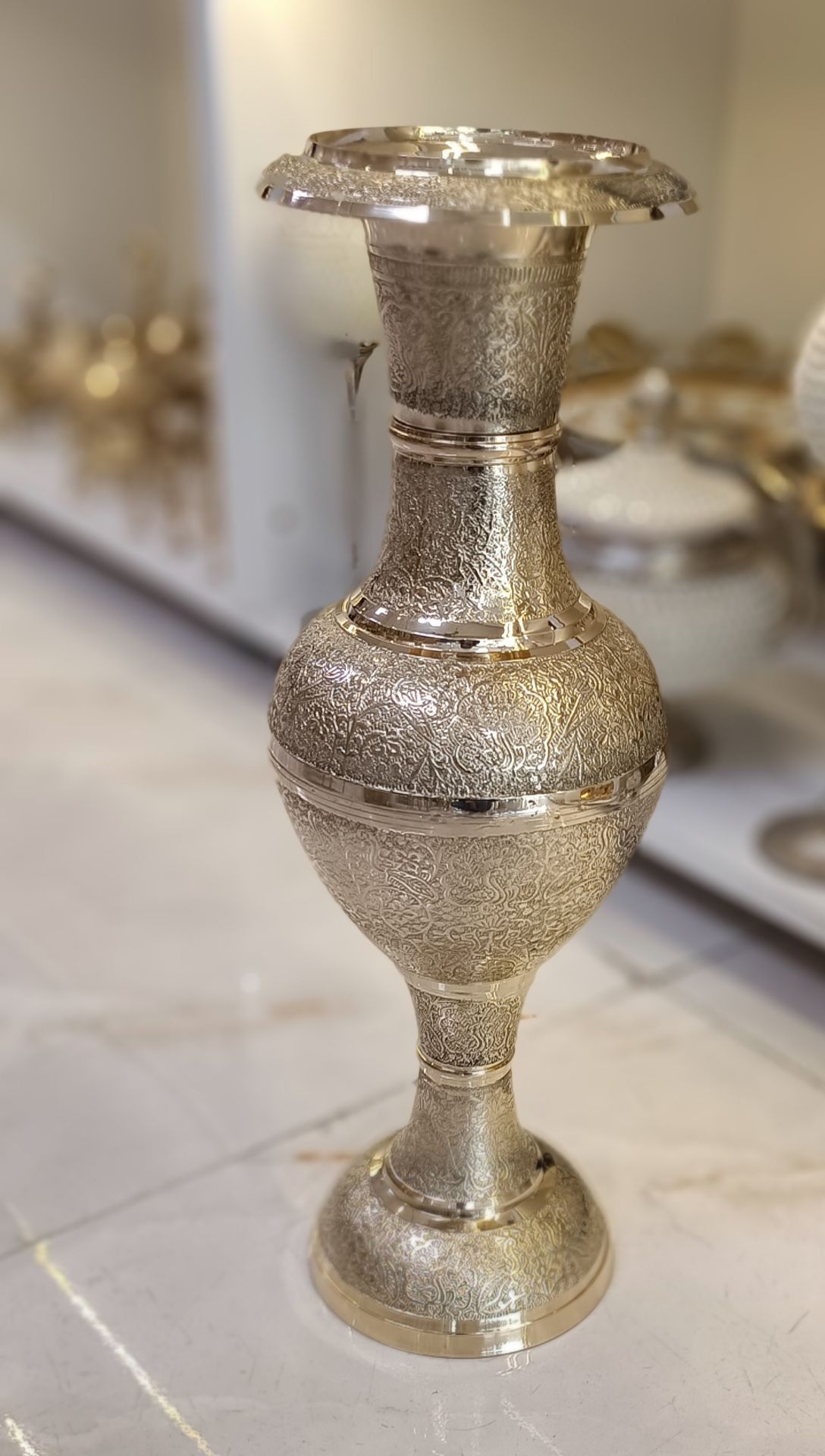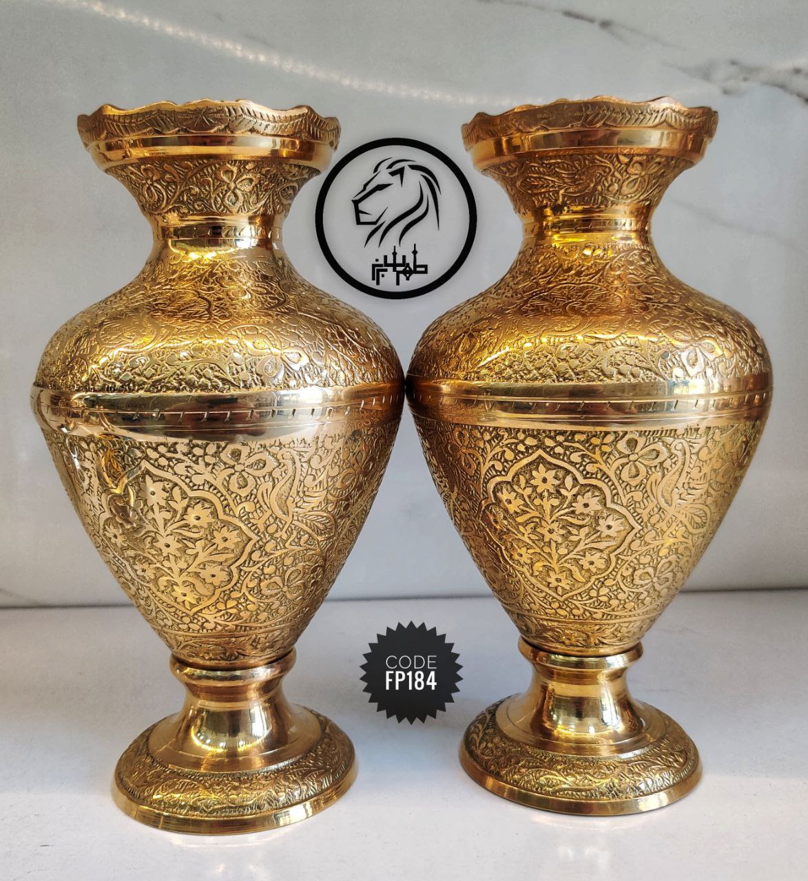 گلدان برنجی لب هلالی حکاکی شده | دکوراسیون لوکس و مقاوم