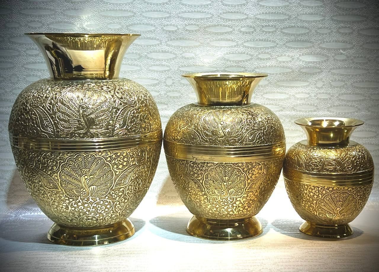 گلدان برنجی طرح طاوس برنجی مدل بدون دسته در سه سایز مختلف
