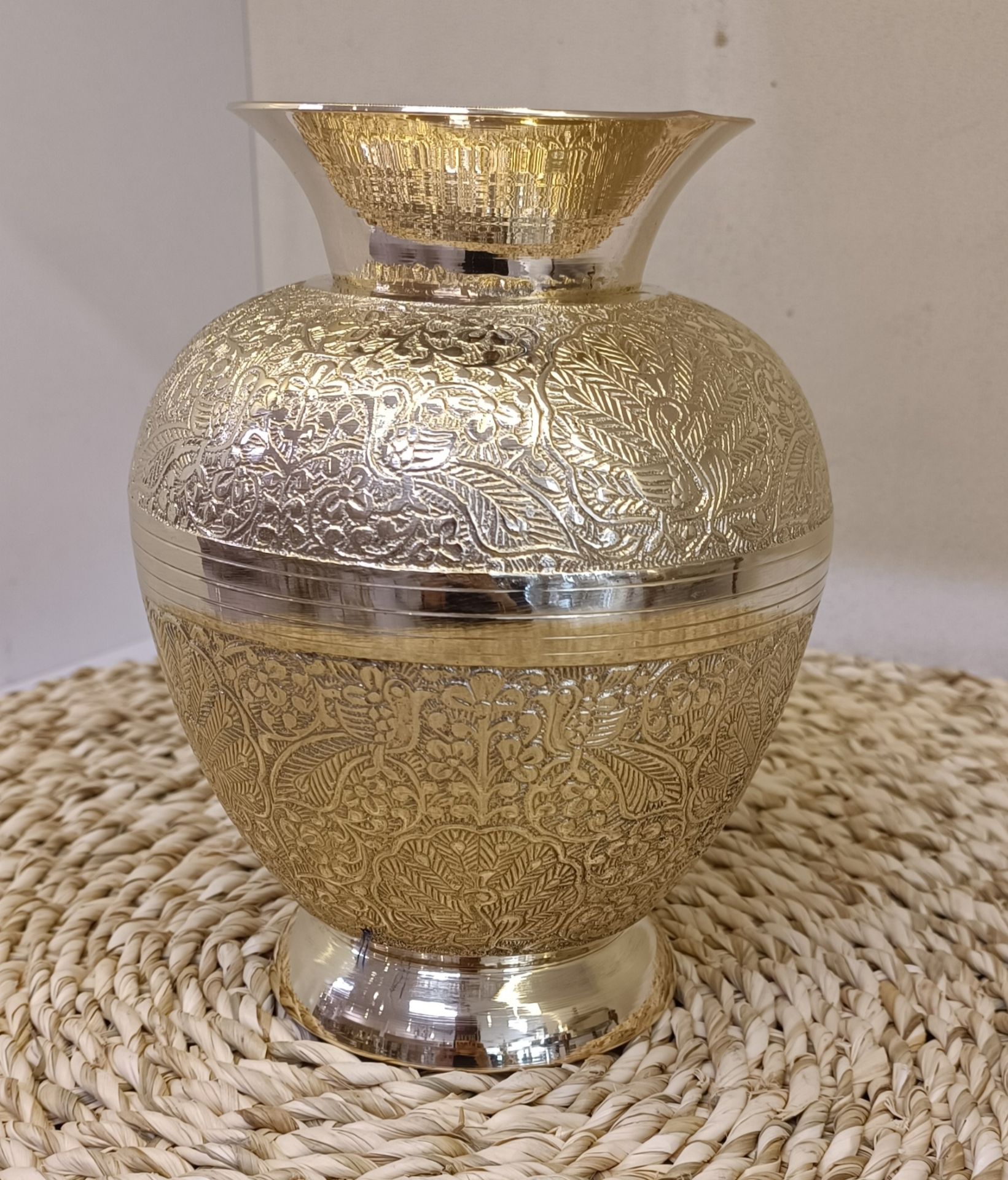 گلدان کشمیر طرح طاووس 8 اینچ برنجی