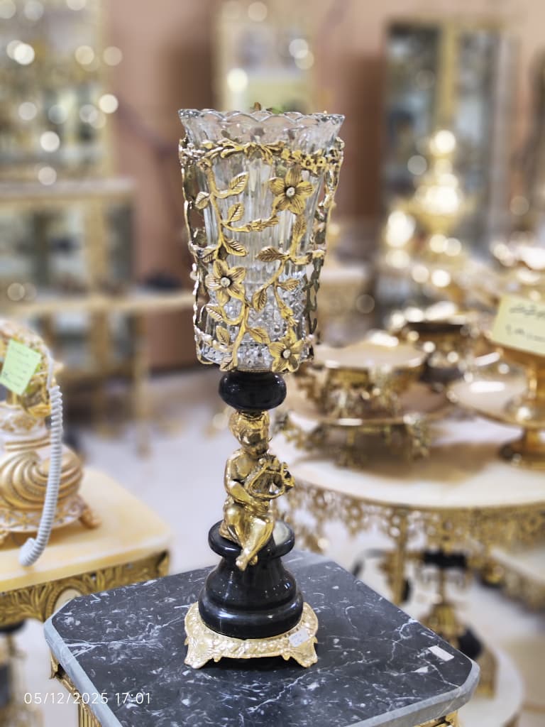 گلدان رومیزی چینی طلا کوب پایه سنگی