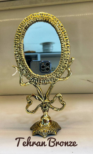 آینه برنجی ایرانی مدل بیضی پایه دار