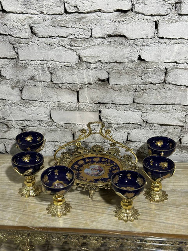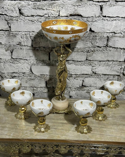 سرویس پذیرایی برنجی مدل بانو (یک ظرف و شش عدد پیاله) در دو رنگ